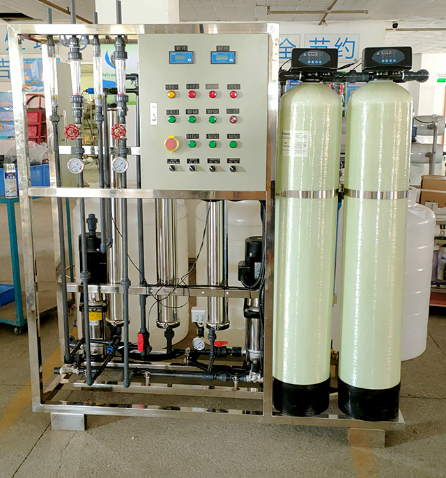水處理凈化提純用二級反滲透設備,顧名思義是以二級反滲透技術(RO膜技術)制備。例如:自來水為進水源,經過1級反滲透RO處理后的純水電導率小于10μs/cm,較好水質小于5μs/cm(RO反滲透膜過濾后出水電導=進水電導×除鹽率,一般進口反滲透膜脫鹽率都能達到99%以上,5年內運行能保證97%以上。